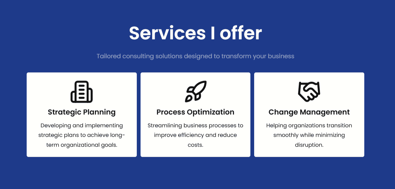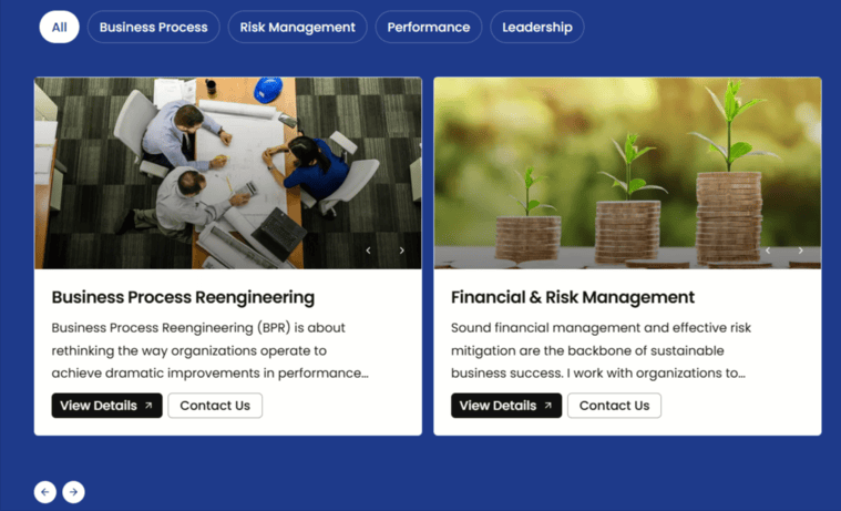 Present your services with icons, filters, and popups designed for clarity and style, so you can explain more without cluttering the layout.